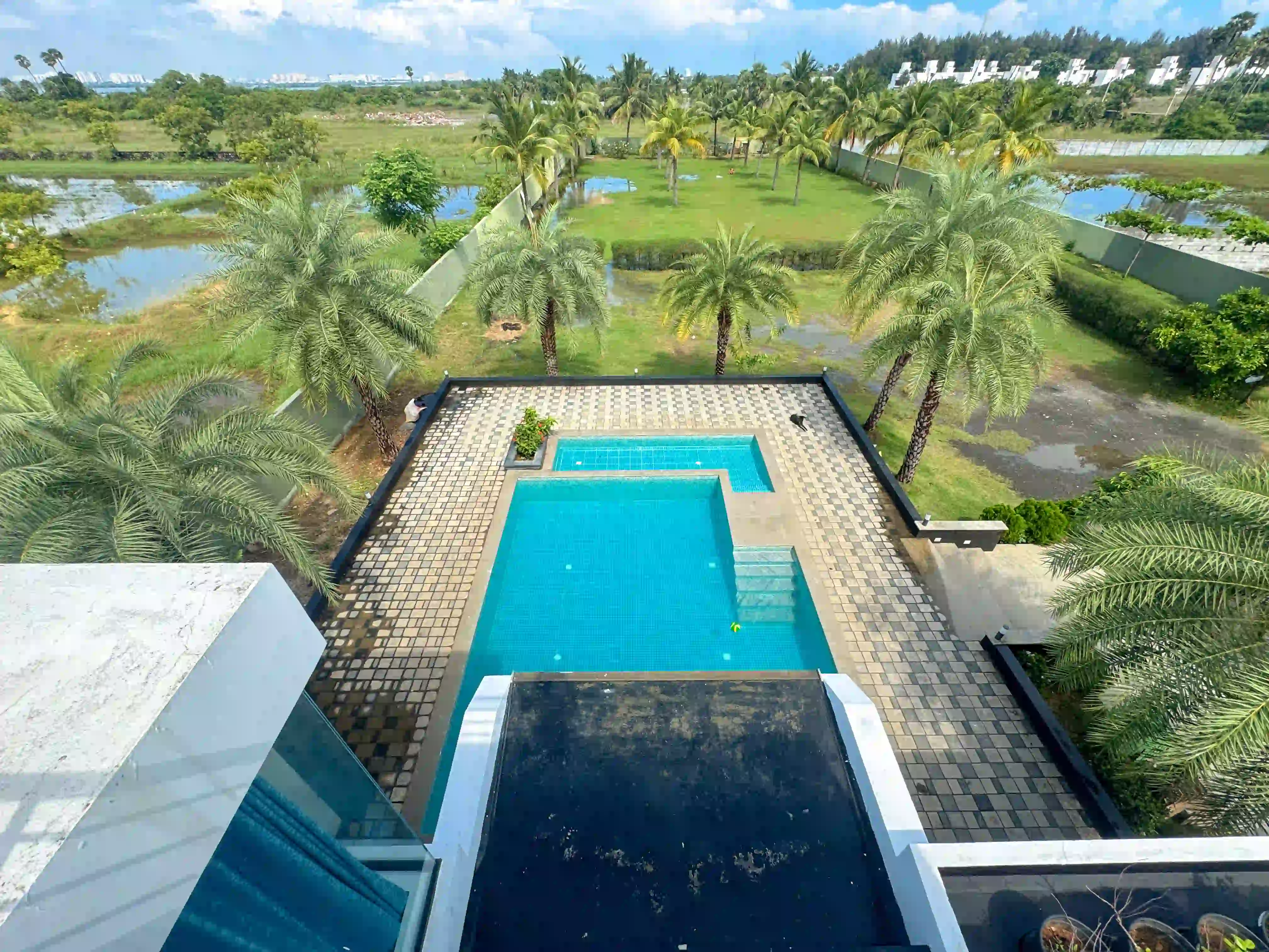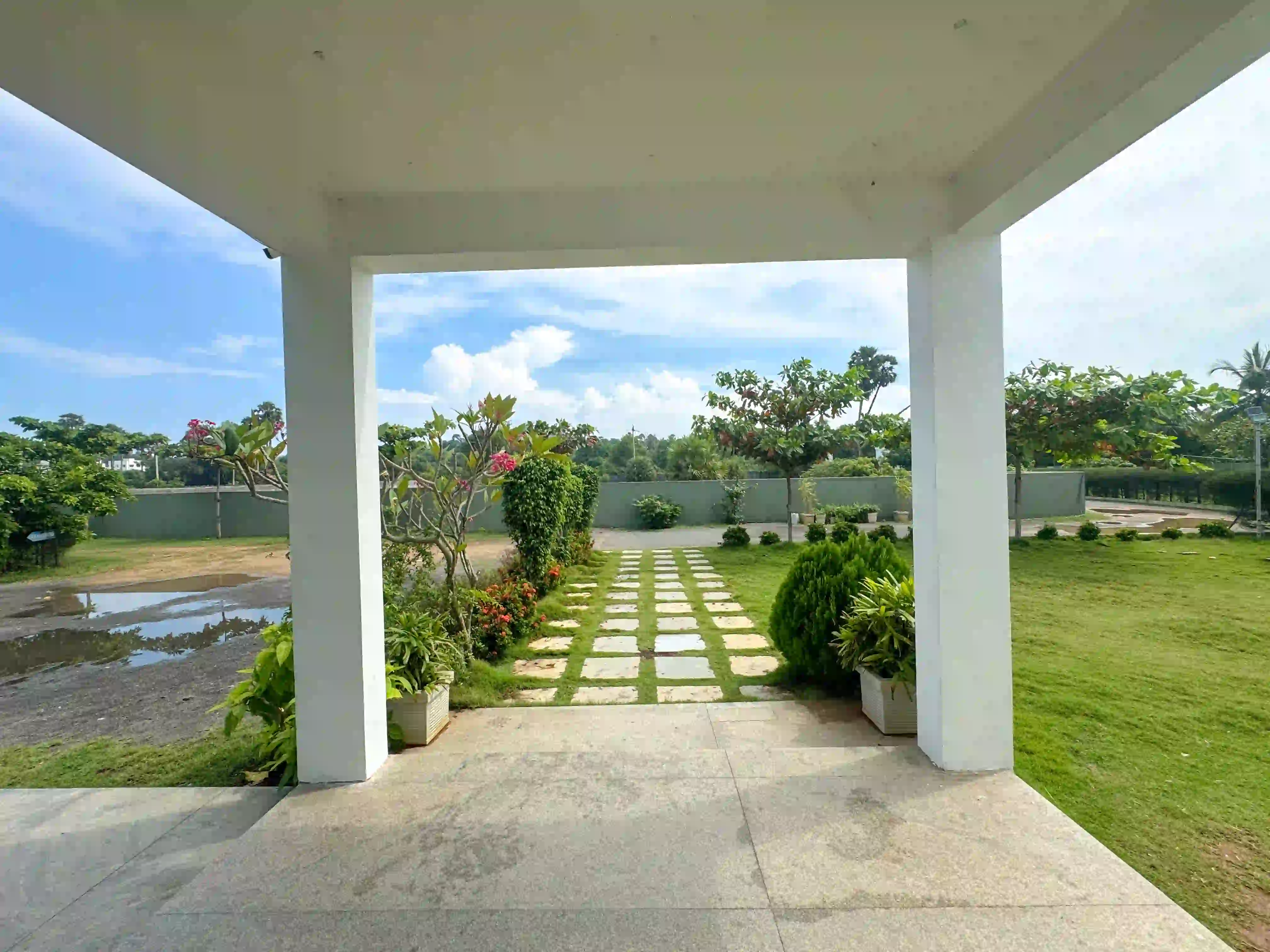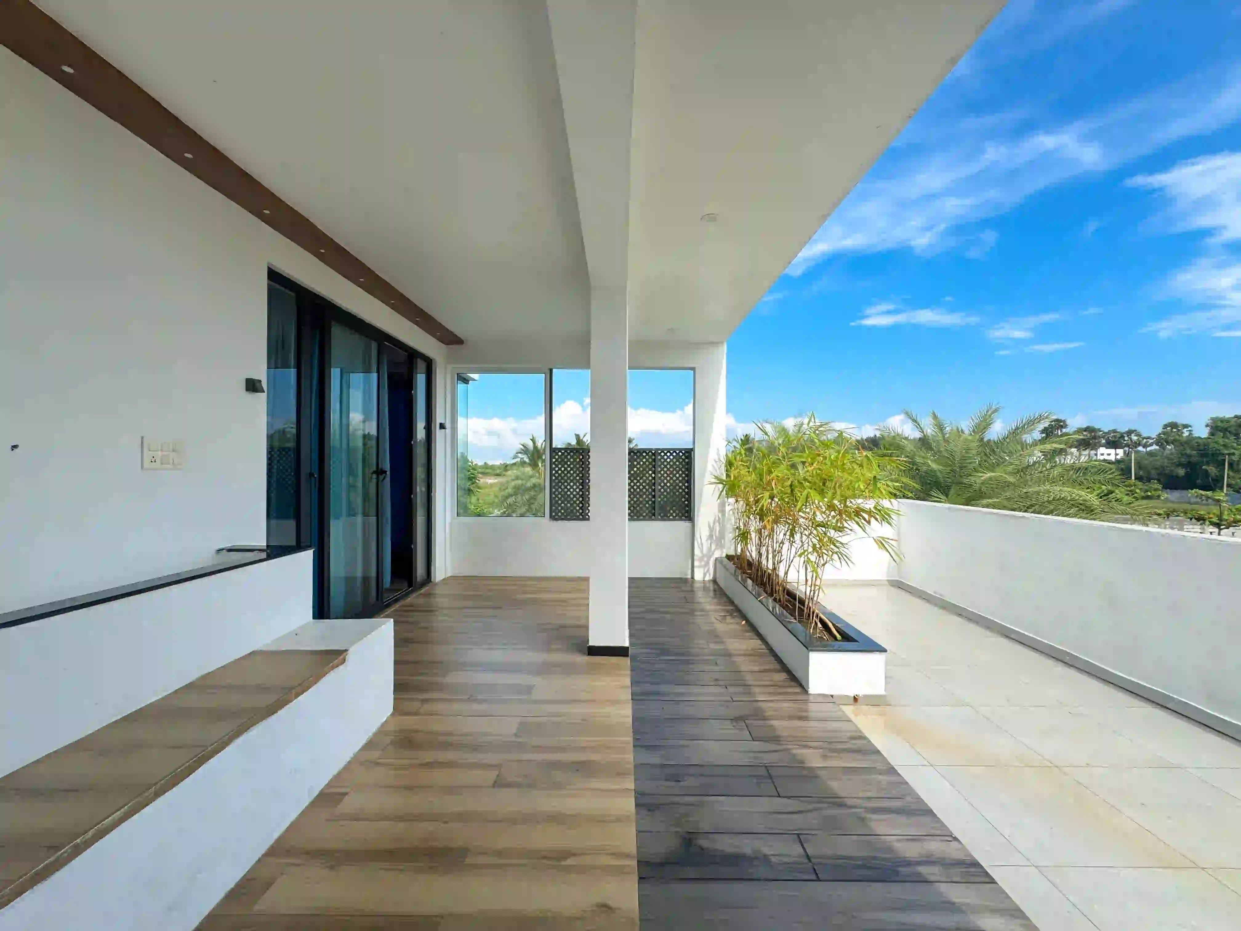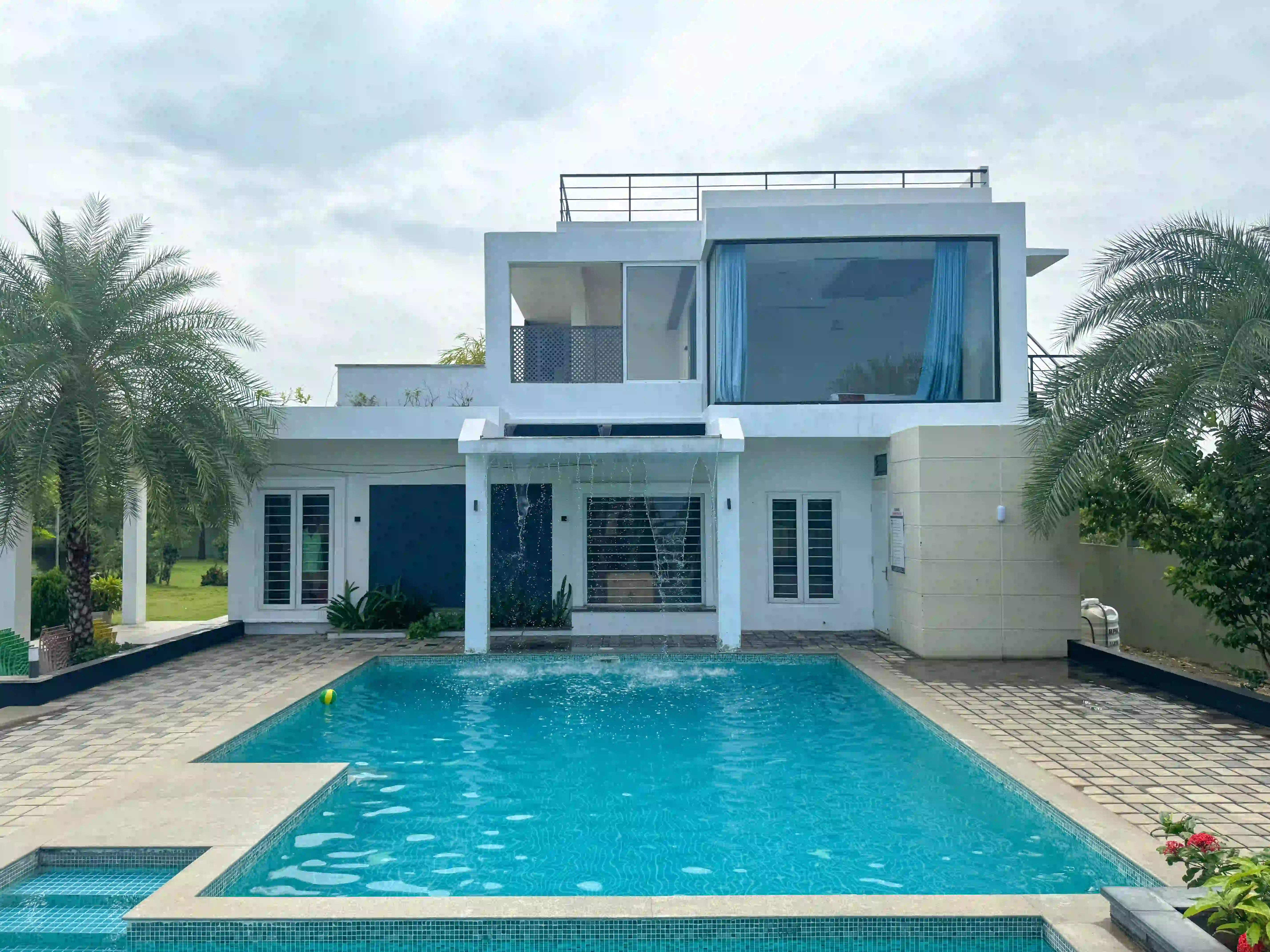 The Landmark Villa provides an exclusive space to go from the city lifestyle with privacy, comfort and sophisticated coastal living on the East Coast Road. Our one-acre 4BHK luxury beach villa blends the open green scenery with modern architectural design in Vadanemmeli, ECR. The smartly designed home with ground floor and first floor, with easy accessibility for the family and groups. Each Space promotes a tranquil living, with a vast lawn, ideal for intimate parties to large celebrations. Our modern interior design offers comfort and privacy. Our villa is surrounded by nature and a serene environment, which creates a balanced and sophisticated ambience. Whether it is a family retreat or a personal getaway, our villa provides privacy and style that integrates for memorable holidays.