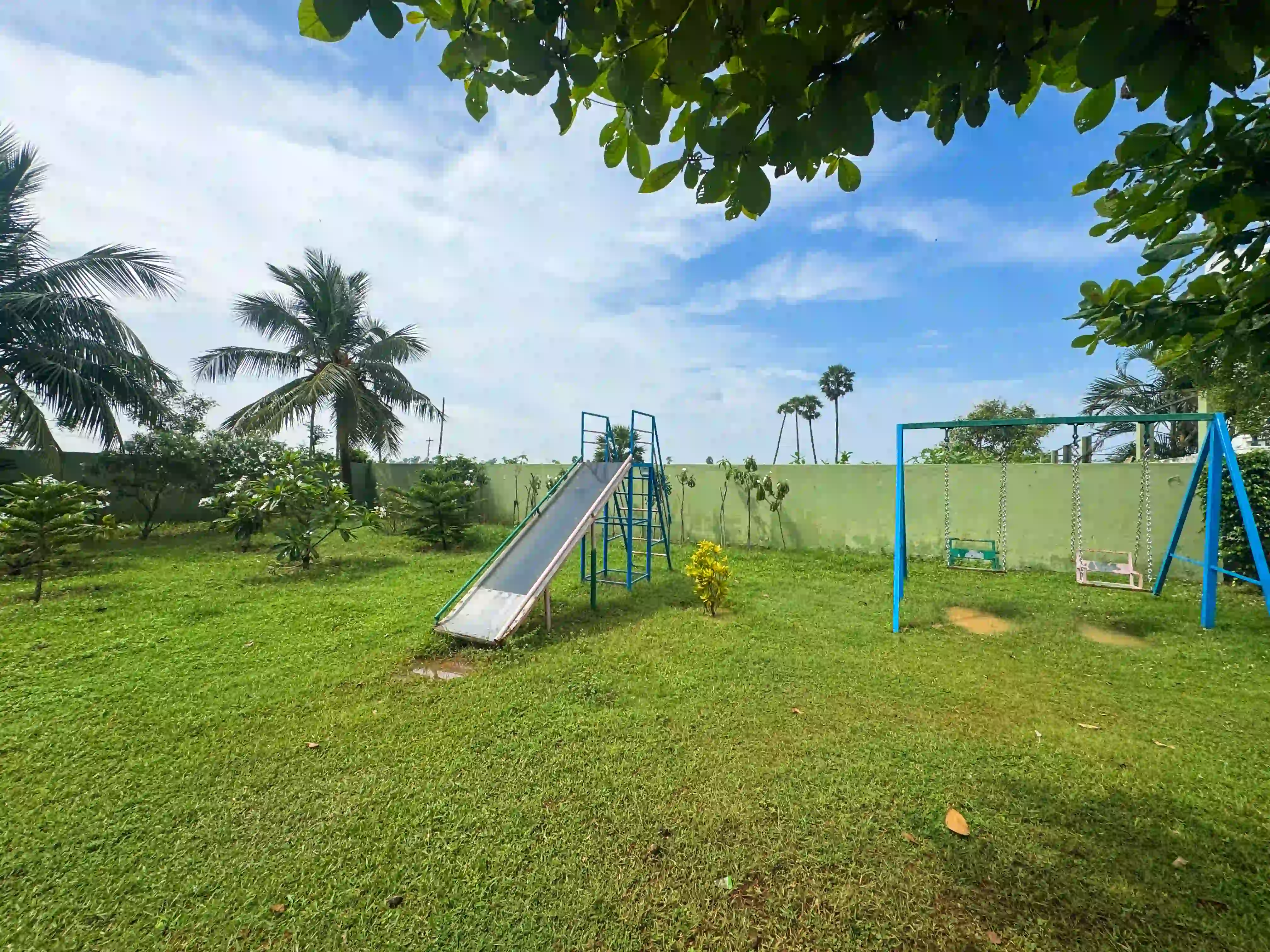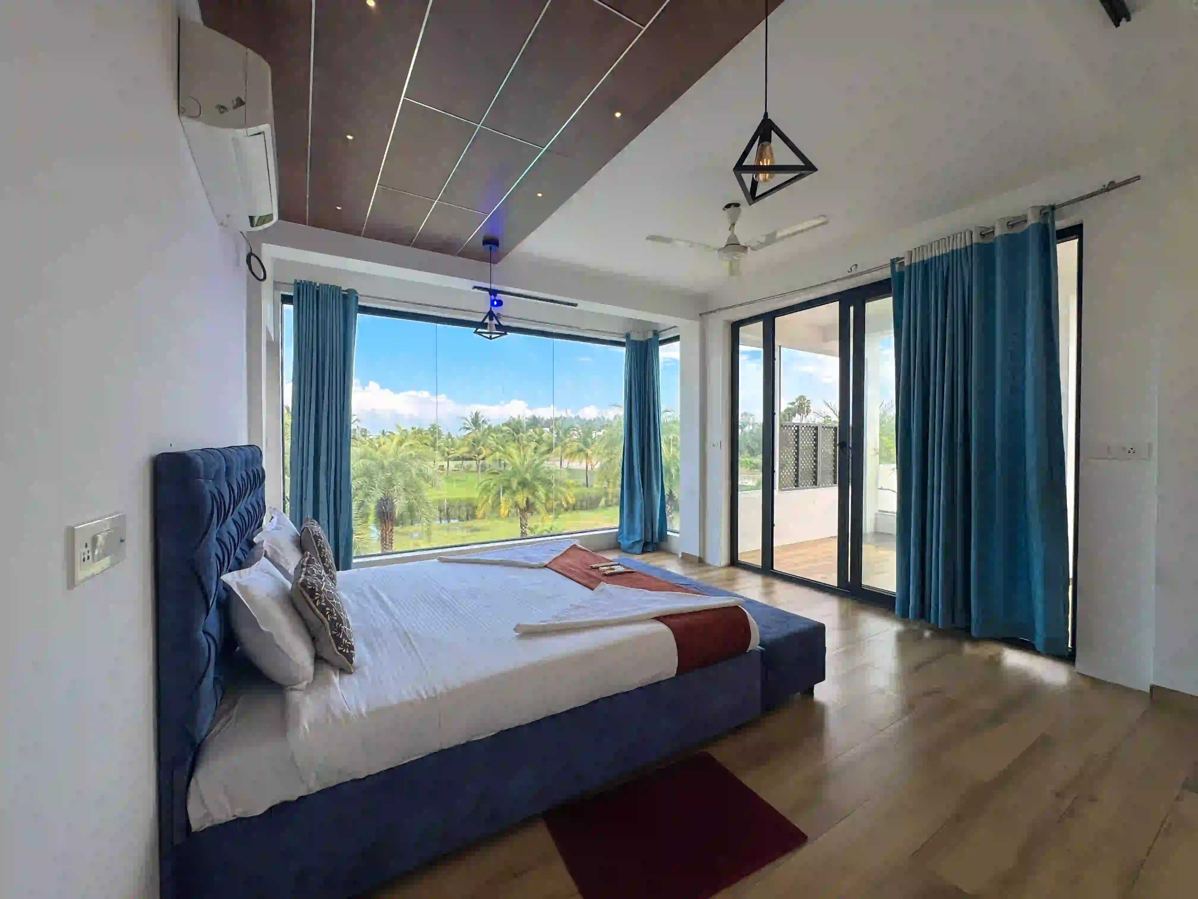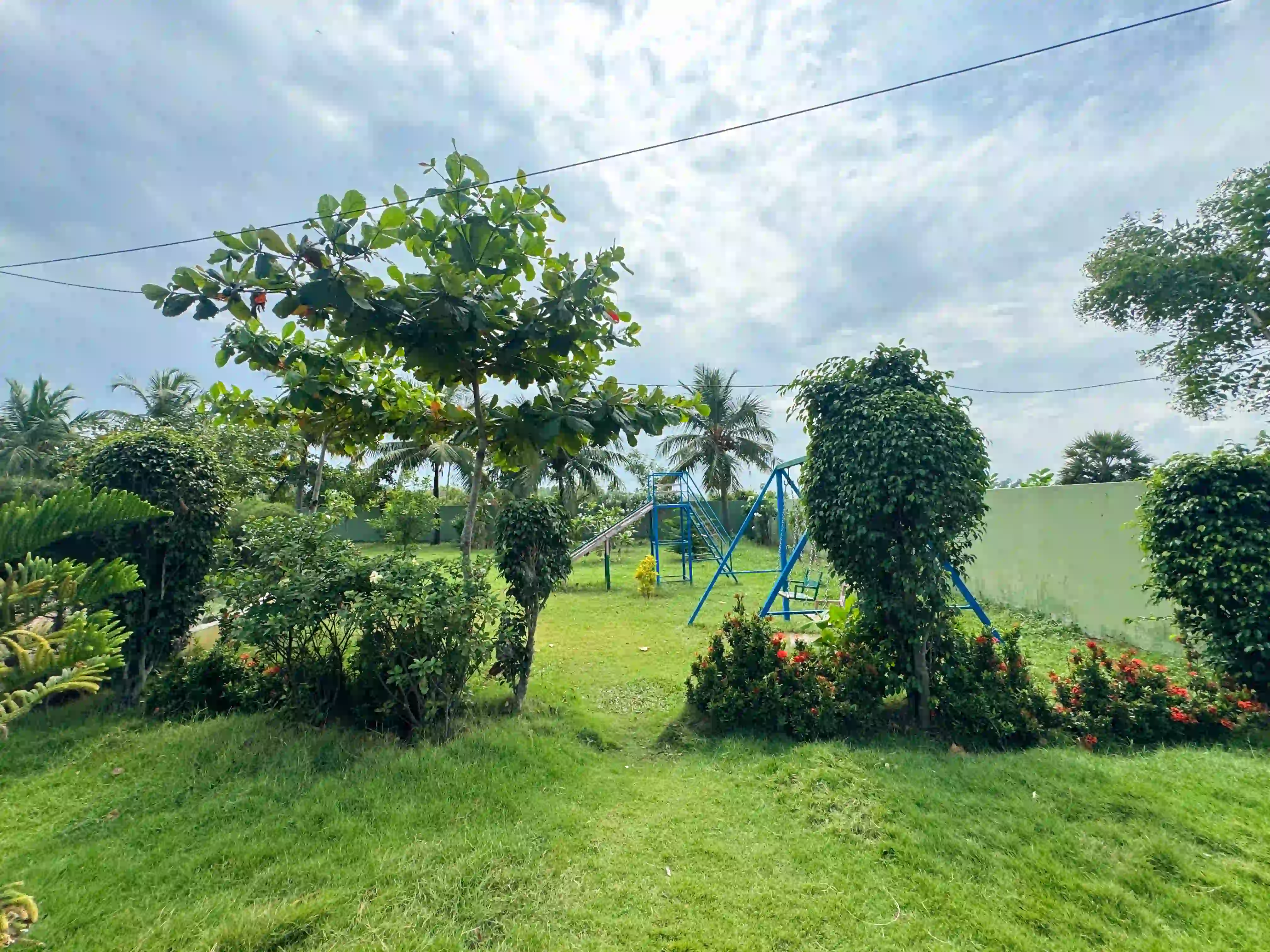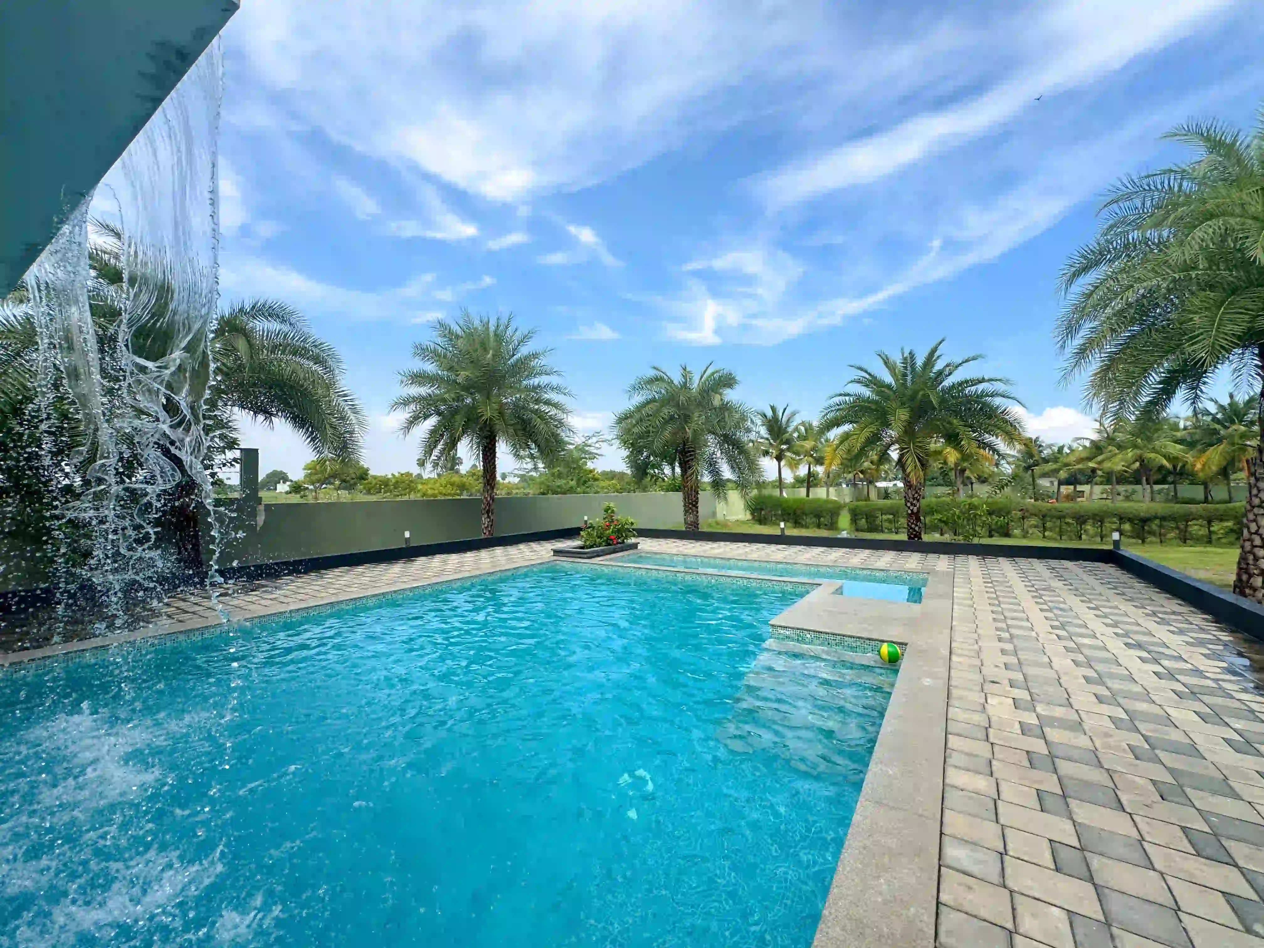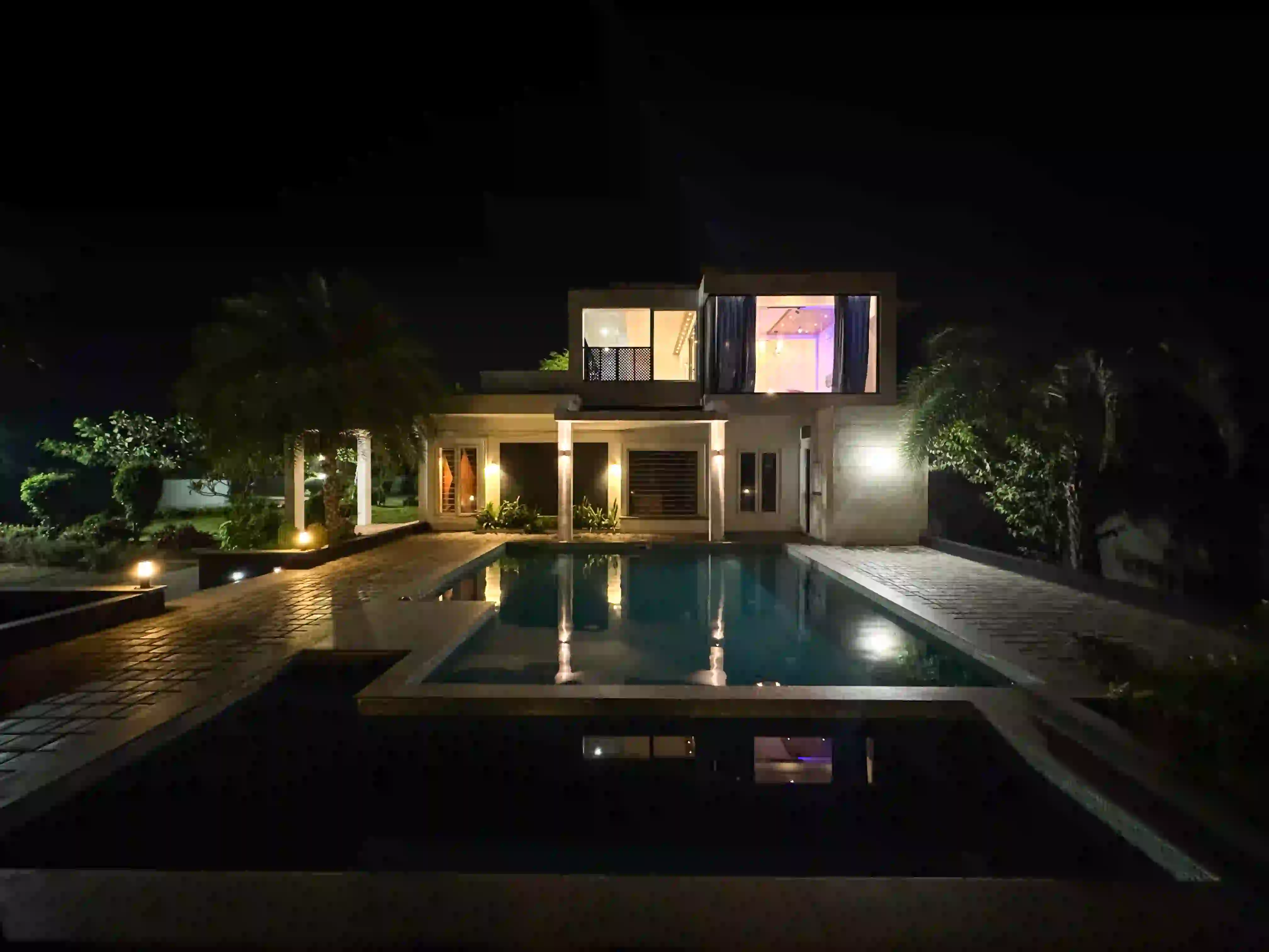 The Landmark Villa provides an exclusive space to go from the city lifestyle with privacy, comfort and sophisticated coastal living on the East Coast Road. Our one-acre 4BHK luxury beach villa blends the open green scenery with modern architectural design in Vadanemmeli, ECR. The smartly designed home with ground floor and first floor, with easy accessibility for the family and groups. Each Space promotes a tranquil living, with a vast lawn, ideal for intimate parties to large celebrations. Our modern interior design offers comfort and privacy. Our villa is surrounded by nature and a serene environment, which creates a balanced and sophisticated ambience. Whether it is a family retreat or a personal getaway, our villa provides privacy and style that integrates for memorable holidays.