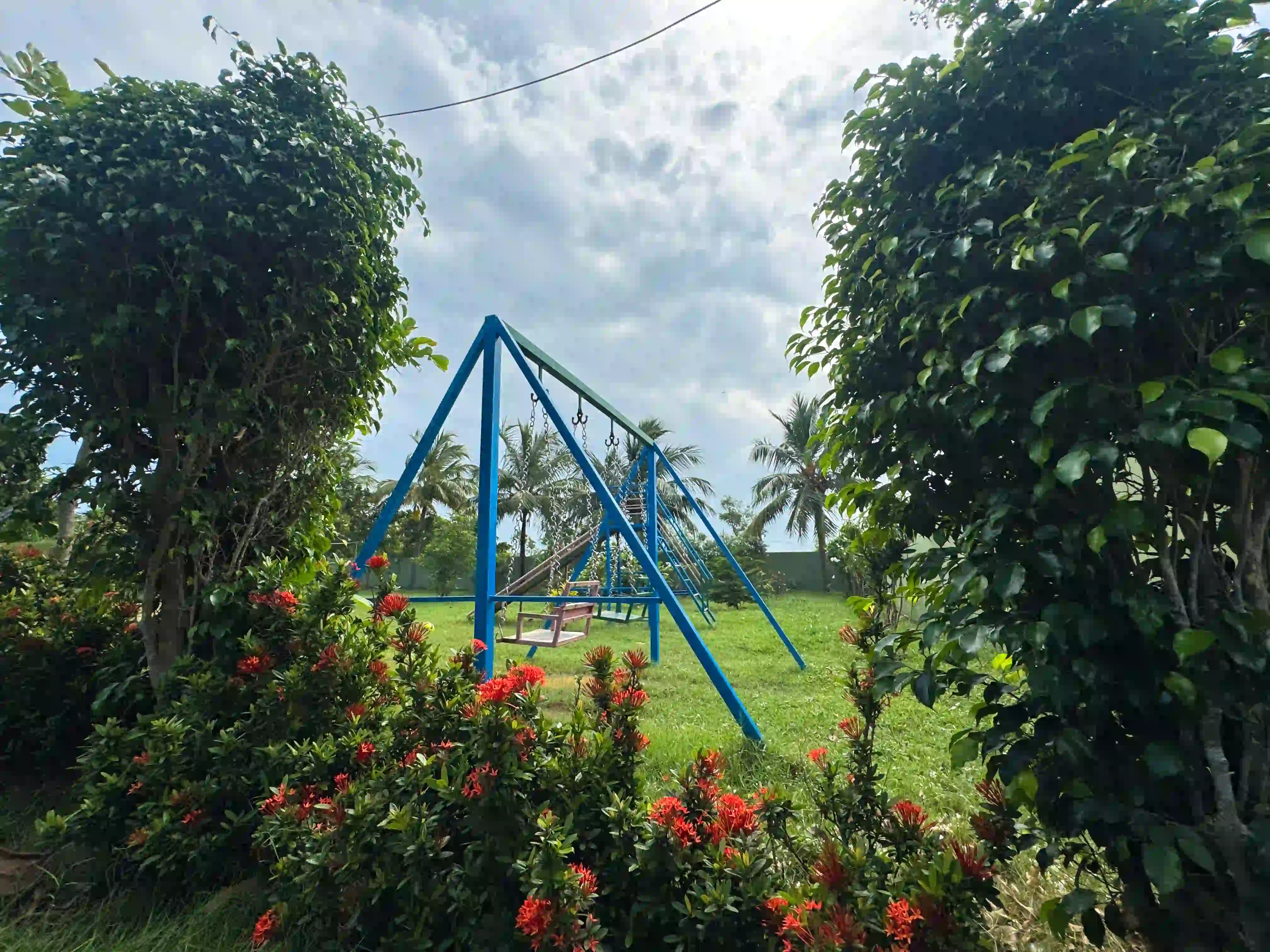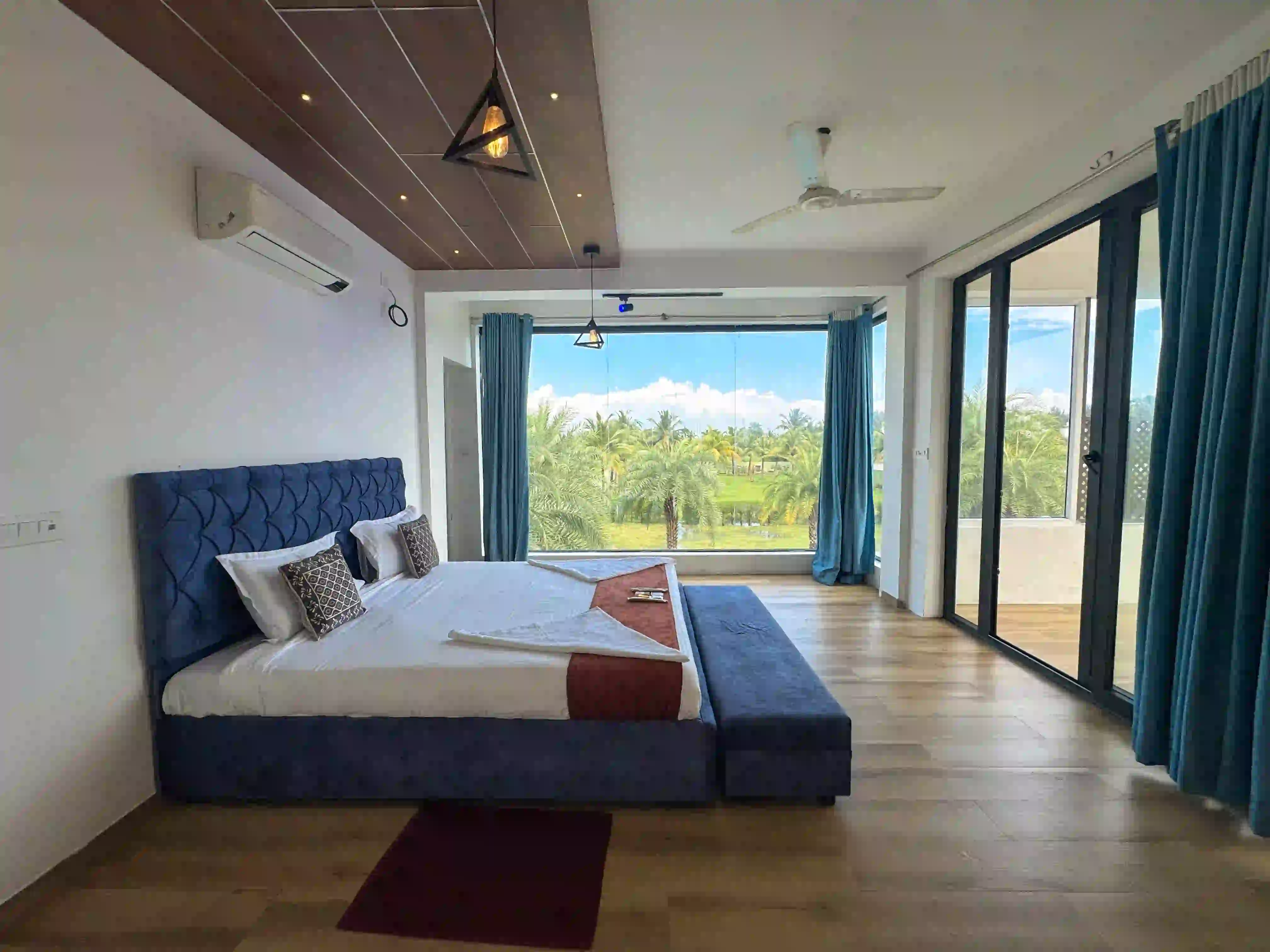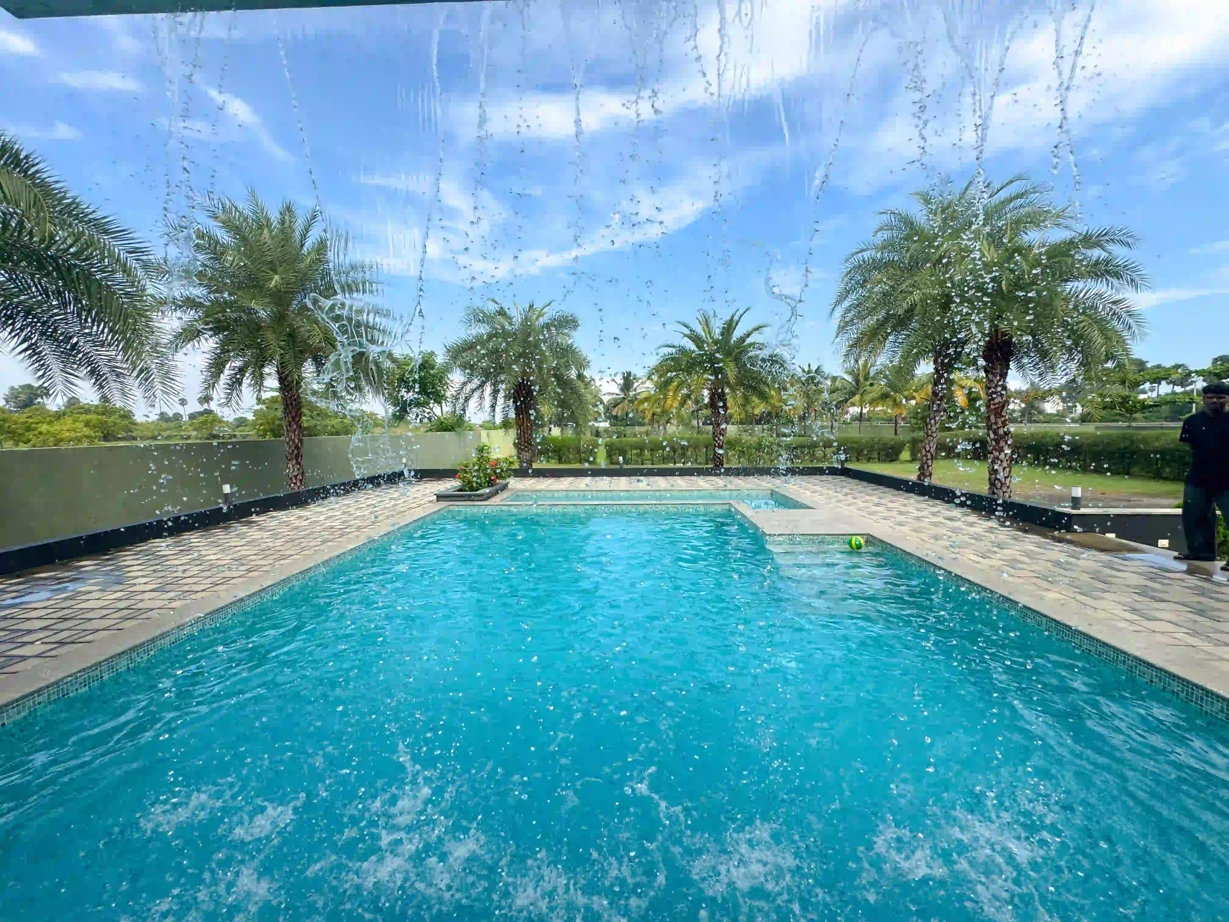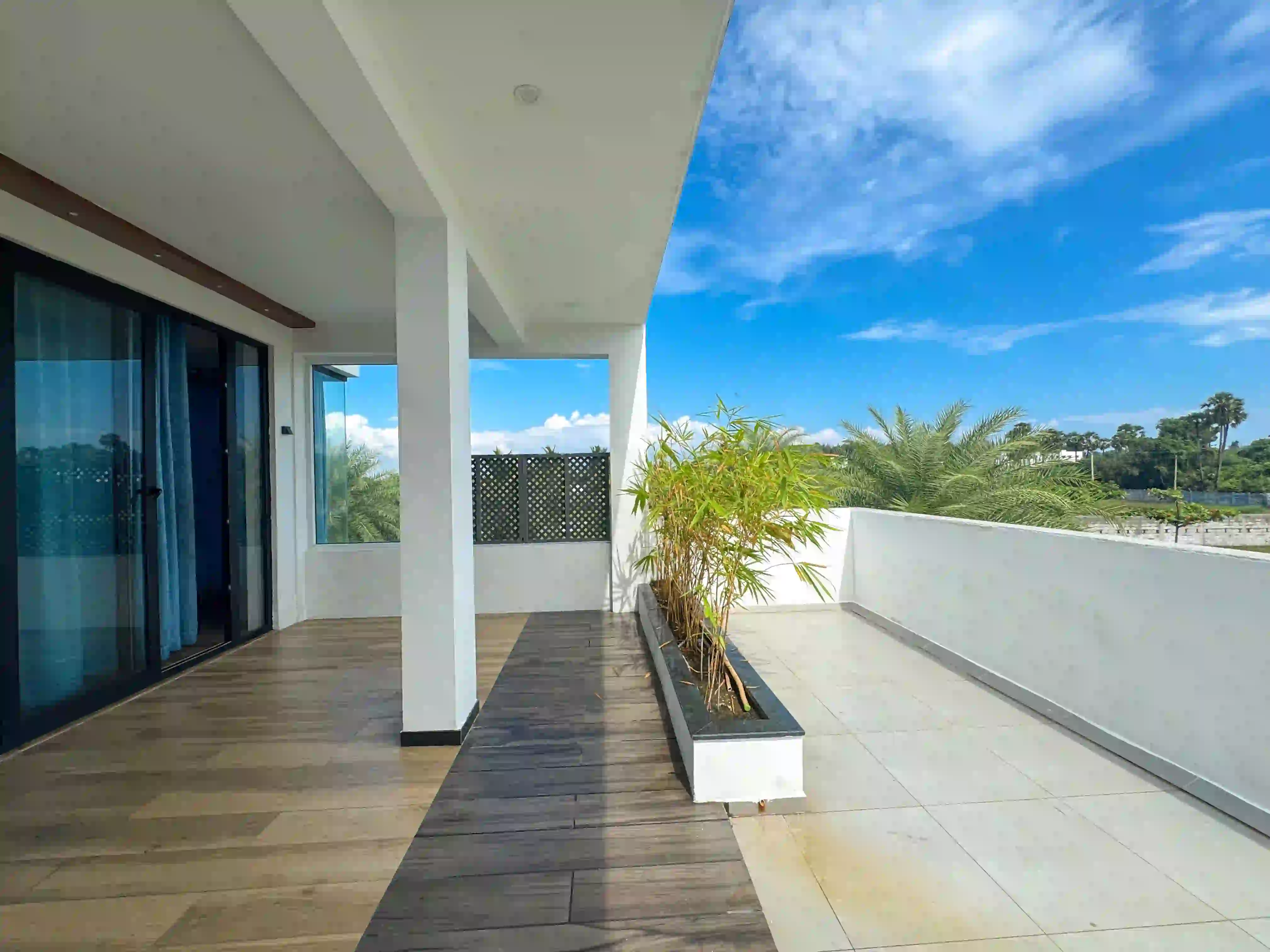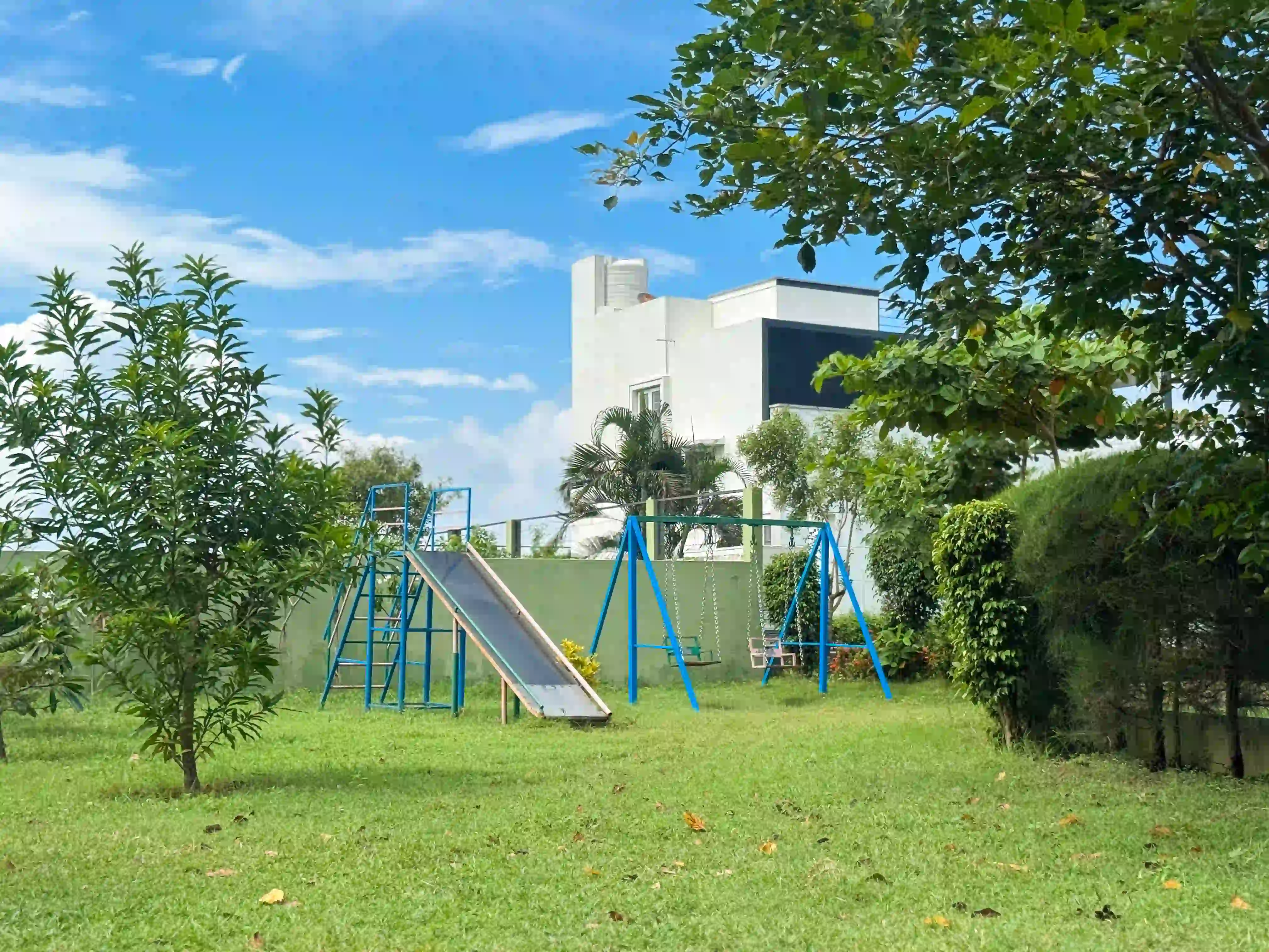 The Landmark Villa provides an exclusive space to go from the city lifestyle with privacy, comfort and sophisticated coastal living on the East Coast Road. Our one-acre 4BHK luxury beach villa blends the open green scenery with modern architectural design in Vadanemmeli, ECR. The smartly designed home with ground floor and first floor, with easy accessibility for the family and groups. Each Space promotes a tranquil living, with a vast lawn, ideal for intimate parties to large celebrations. Our modern interior design offers comfort and privacy. Our villa is surrounded by nature and a serene environment, which creates a balanced and sophisticated ambience. Whether it is a family retreat or a personal getaway, our villa provides privacy and style that integrates for memorable holidays.